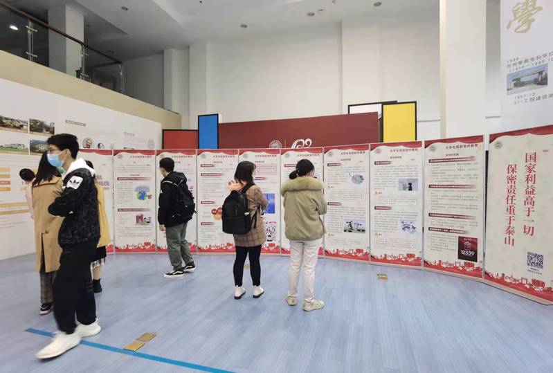 同学们首先驻足在博物馆一楼大厅的“树牢保密意识,共筑安全防线”——大学生保密宣传教育专题教育展板前,了解当前国家安全与保密工作面临的形势与任务,通过基础知识、思想意识、典型案例、安全防范等篇章的学习,牢记国家利益高于一切,保密责任重于泰山的原则!