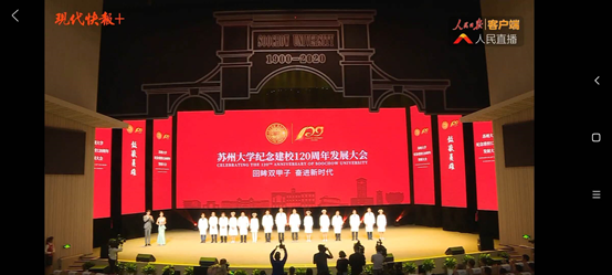 发展大会还对苏大教师、对苏大建设做出贡的社会各界人士、新冠肺炎防控工作中获得先进个人的医护人员们进行了表彰。其中,最美“逆”行者们的故事令人热血澎湃,他们永远坚强地奋战在疫情防控的第一线,舍己为人。当拿出那件签满了医护人员姓名的白大褂时,学生们都鼻头一酸。年初的疫情历历在目,苏大附属医院的医护人员挺身而出,成为大家的保护伞。想到这些,看着直播的学生们也情不自禁地开始鼓掌,表达感激、敬佩之意。
