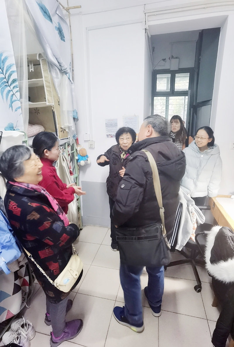 座谈会后,几位老教师走进学生宿舍,了解同学们的生活情况,将关爱送到同学身边。