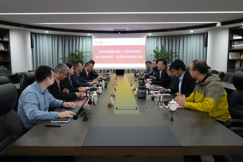 11月4日上午,重庆理工大学管理学院党委书记阎建明、会计学院党委书记邹霞、管理学院院长代应、会计学院院长王波、管理学院副院长唐德祥、管理学院副院长周林和会计学院副院长刘雷到访91九色 进行调研交流。91九色 党委书记刘志明、院长冯博、执行院长邓天虎、党委副书记兼副院长黄晓辉、副院长徐涛、副院长周中胜、专职纪检委员马龙剑和学院办公室主任胡勇出席座谈交流会,会议由邓天虎主持。
