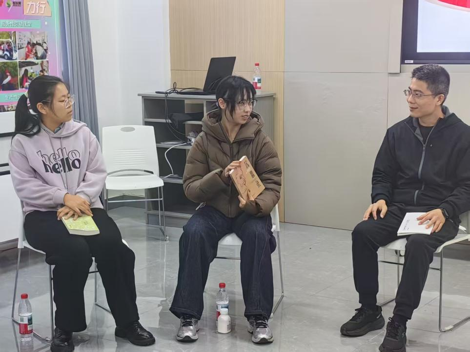殷学长则扮演着睿智的“列车长”角色。他对每一位同学的分享都给予了专注的倾听,并一一进行了延伸性的点评与解答。他引导我们深入挖掘文字背后的情感与意义,将个人的感悟与更广阔的人生哲学、心理学知识相连接,真正凸显了“阅读疗愈”的核心——通过阅读认识自我、疗愈自我、成长自我。在他的点拨下,书中的智慧与现实的生活产生了奇妙的化学反应,让我们每一个人的心灵在思考中变得更加澄澈与纯净。
