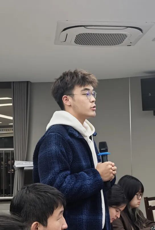 在随后的交流互动环节,同学们围绕理想追求与职业发展、市场环境与资源整合、科学研究与行业需求等话题踊跃提问,茅老师结合自身实践经历和所学所感作出了精彩回应,勉励同学们要把个人理想追求融入党和国家事业发展大局,现场氛围热烈,将课程推向了高潮。