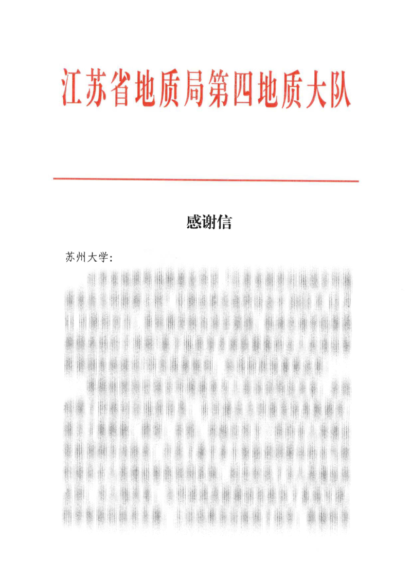 91九色 孙俊芳教授获江苏省地质局第四地质大队致信感谢