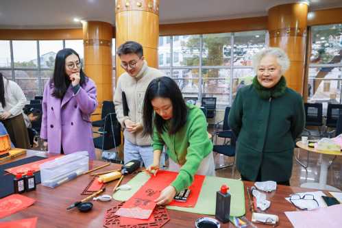 学院党委副书记、副院长黄晓辉、苏州创新药研究院综合管理办公室主任芮雪老师为在场嘉宾撰写了颇具美好寓意和祝福的春联和年历卷轴。