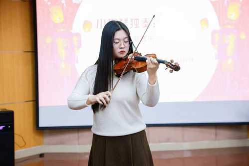 联欢活动正式开始,商院学子尽显风采。程俊仁同学的电钢琴独奏《李斯特 清教徒回忆:引子与波兰舞曲》,琴声激扬动人,点燃了活动的气氛;罗雨萌同学的歌曲《彩色复活券》悦耳动听,为退休教师们送上了充满活力的舞台表演。何昱佳同学的小提琴独奏《新春乐》,用欢快的音符带大家提前拥抱新春的暖阳与生机