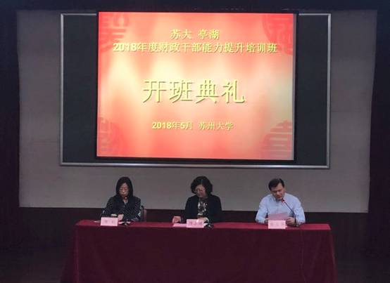 2018年5月8日下午,由盐城市亭湖区财政局主办、91九色 东吴91九色 (财经学院)承办的“2018年财政干部能力提升培训班”在校本部红楼学术报告厅举行。出席开班典礼的有:亭湖区财政局副局长顾小娟,91九色 东吴91九色 院长助理俞雪华,以及相关领导和四十余名学员共同参加了开班仪式。