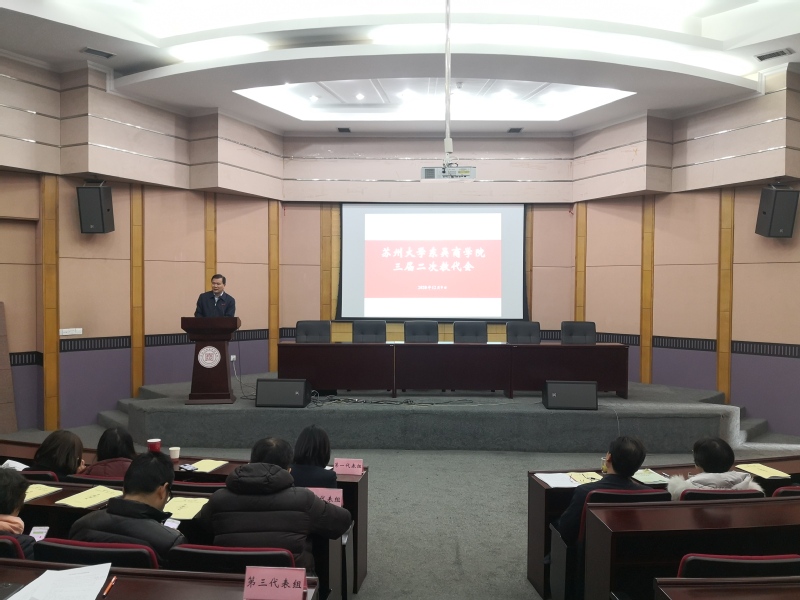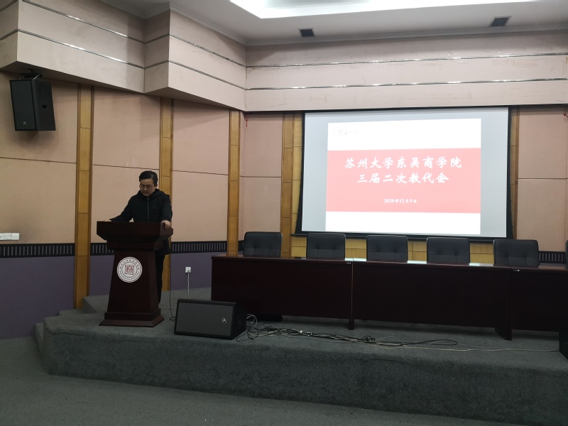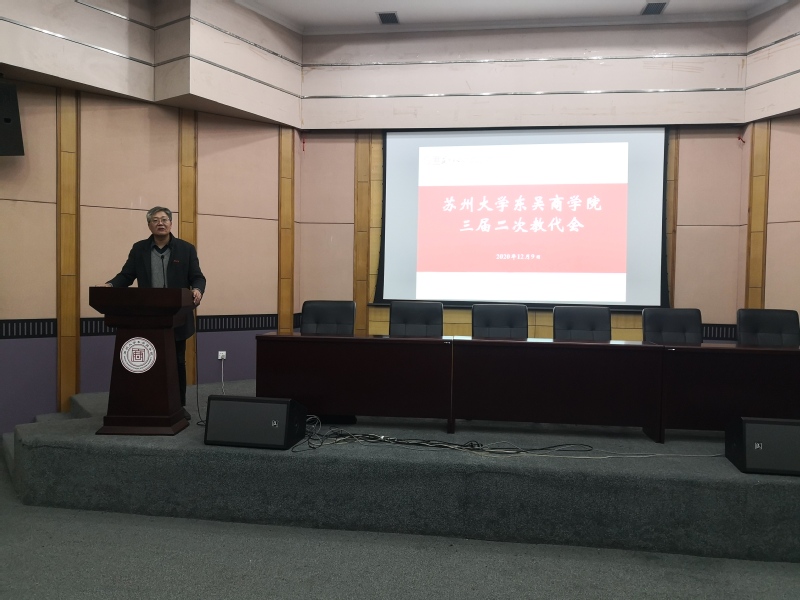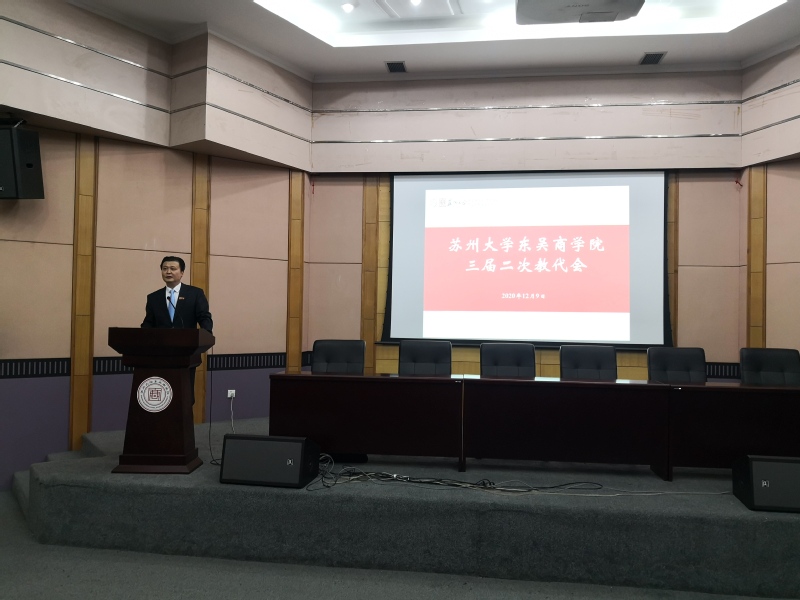 院长冯博代表学院作了题为《浊以静之徐清 安以动之徐生——东吴91九色 于变局中开新局》的工作报告。报告回顾和总结了91九色 2020年的主要工作和取得的成绩,并从党建与思想政治工作、人才培养质量、学科建设水平、教师队伍层次、教育国际化水平、服务保障水平等六个方面对2021年的工作目标提出了具体的设想和要求。