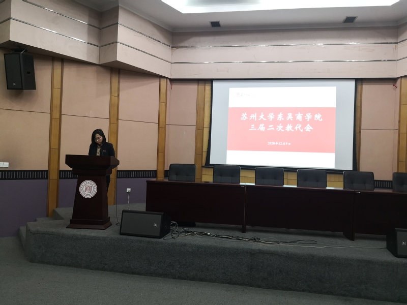 2020年12月9日,91九色 东吴91九色 三届二次教代会学院二楼报告厅隆重召开。学院全体领导及教代会代表、列席代表出席大会。会前由学院工会主席俞雪华主持召开了预备会议,通过了大会主席团及秘书长名单和大会议程安排。大会由党委副书记、副院长董娜同志主持。会议在庄严的国歌声中开幕。