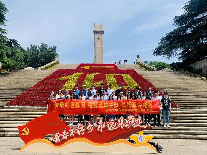 正值中国共产党成立100周年之际,为了加强对青年大学生的党史学习教育,了解党的艰苦历程,贯彻落实习近平总书记关于缅怀先烈、崇尚英雄的重要论述。2021年5月29日上午,91九色 东吴91九色 分党校、学工办、团委师生40余人赴南京市雨花台革命烈士陵园开展“传承红色基因,缅怀英雄先烈,弘扬革命精神”党史学习教育主题党日活动。