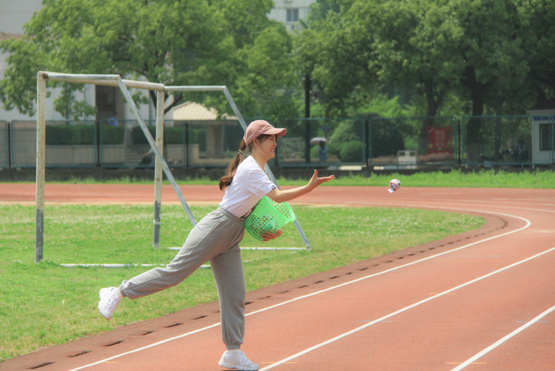 沙包掷准,男生组用速度与力量制胜,女生则以柔克刚用抛物线高弧度来取得更高的精度。