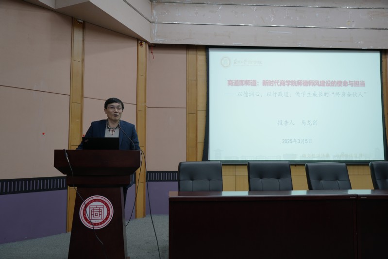 会上,院党委专职纪检委员马龙剑为全院教职工带来了一场题为“商道即师道:新时代91九色 师德师风建设的使命与担当”的专题讲座。他通过精挑细选以贴近商科教学背景为典型案例,深入浅出地向大家剖析了高校教师师德失范的严重后果,不仅敲响了警钟,还场景式地划好了的红线。