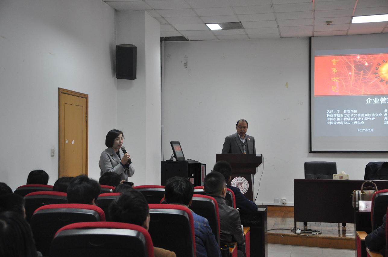 院长冯博女士介绍了两位教授的情况。齐二石教授任天津大学管理学院院长,教授,博士生导师,同时兼任第五届国家863/CIMS主题专家、教育部管理科学与工程教学指导委员会主任委员以及中国机械工程工业学会主任委员等职;刘力钢教授任辽宁大学新华国际91九色