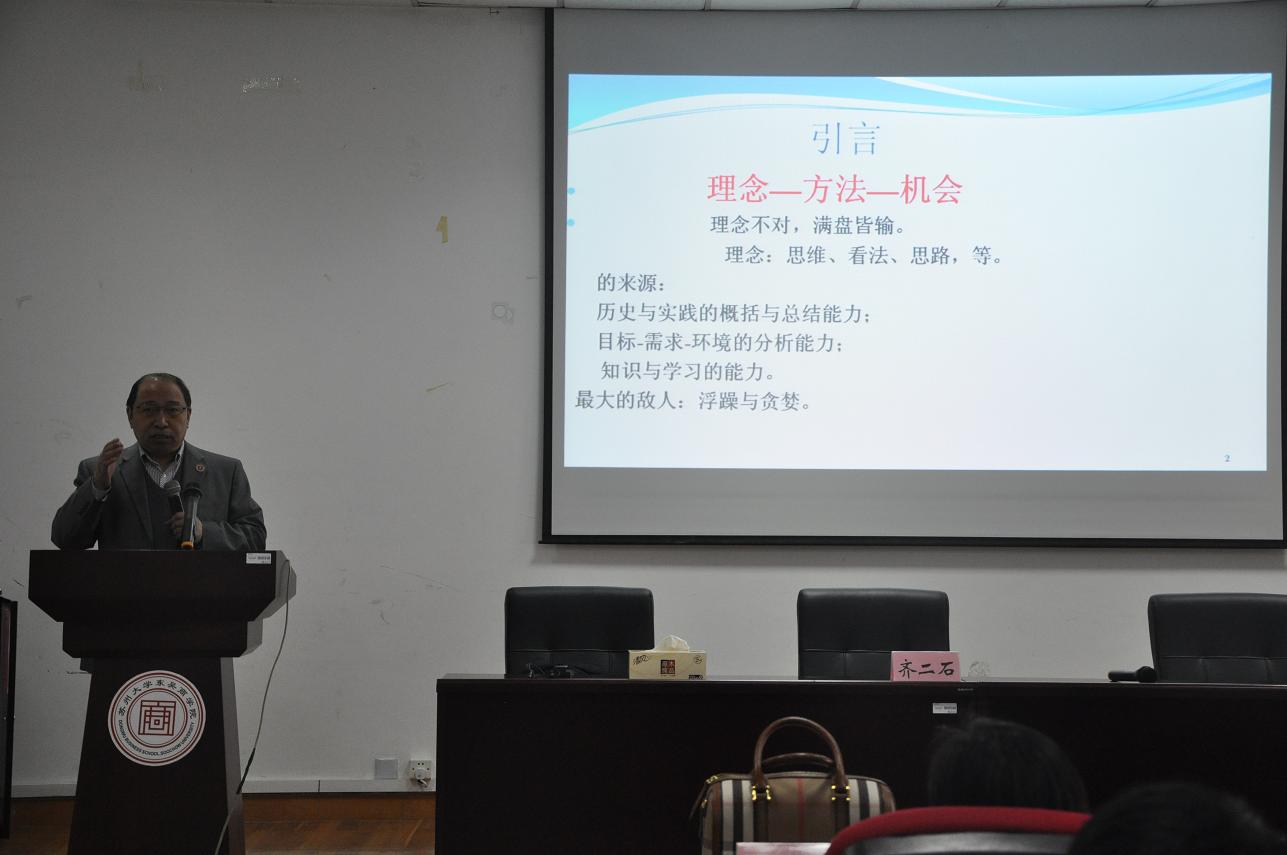 在创业方面,刘力钢教授结合自身教学经验给了一些建议。创业初期要确认自身的创业起点是什么,同时要计算自身创业能承担多少风险,明白选取这个行业的依据优势什么。