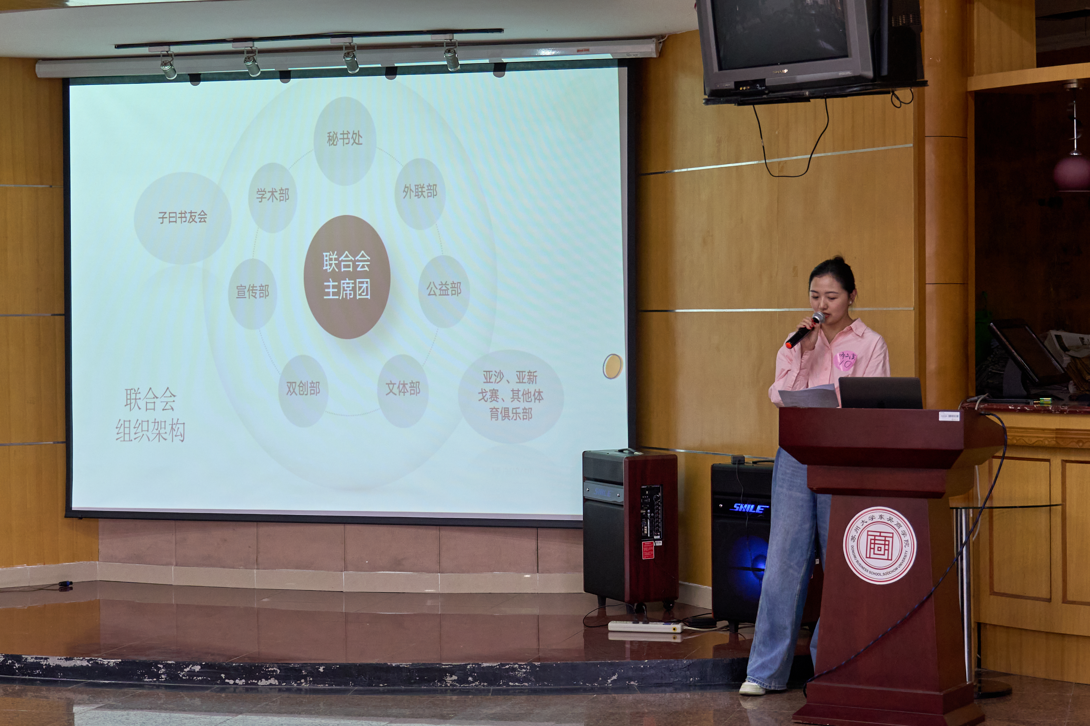 At the beginning of the event, Qi Wenxi, the new president of the Student Union, provided a detailed introduction to the union's organizational structure, including departments such as the Secretariat, Publicity Department, Cultural and Sports Department, External Liaison Department, Academic Department, and Innovation and Entrepreneurship Department. The union operates with the fundamental purpose and basic orientation of dedicating ourselves to serving the students, firmly establishing the work philosophy of serving the students, relieving the teachers, and contributing to the college.