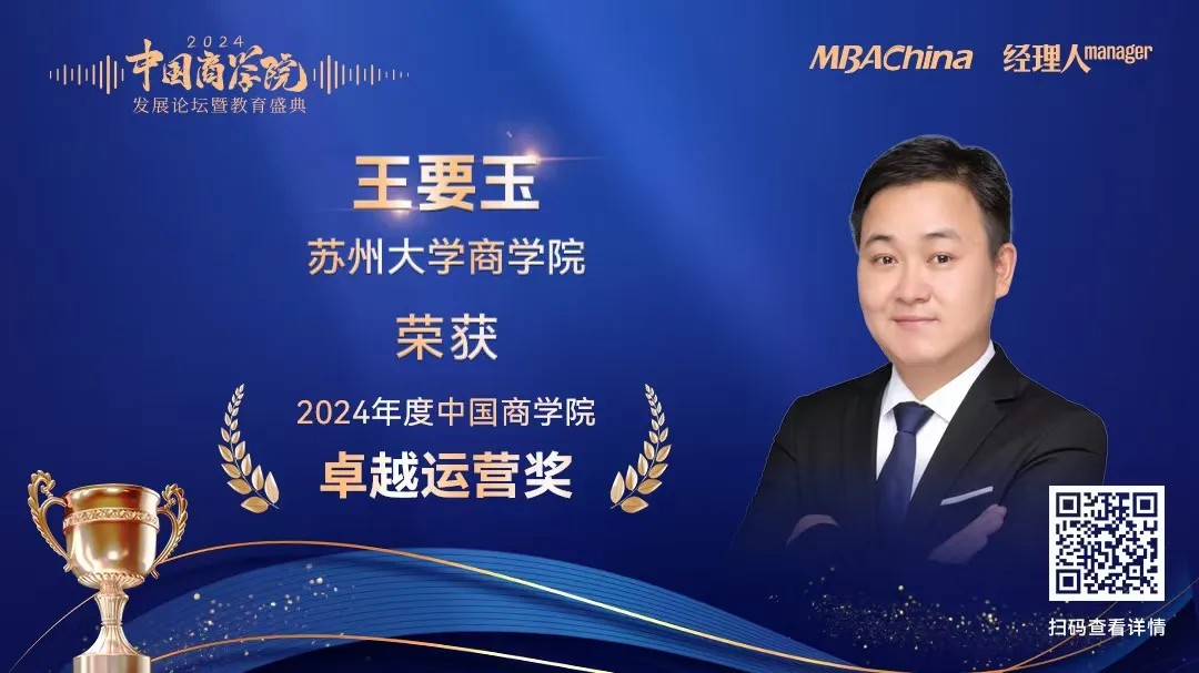 In addition, Prof. Wang Youyu, Associate Dean of Soochow University Business School and Director of MBA Center, was awarded the “2024 China Business School Operational Excellence Award”.